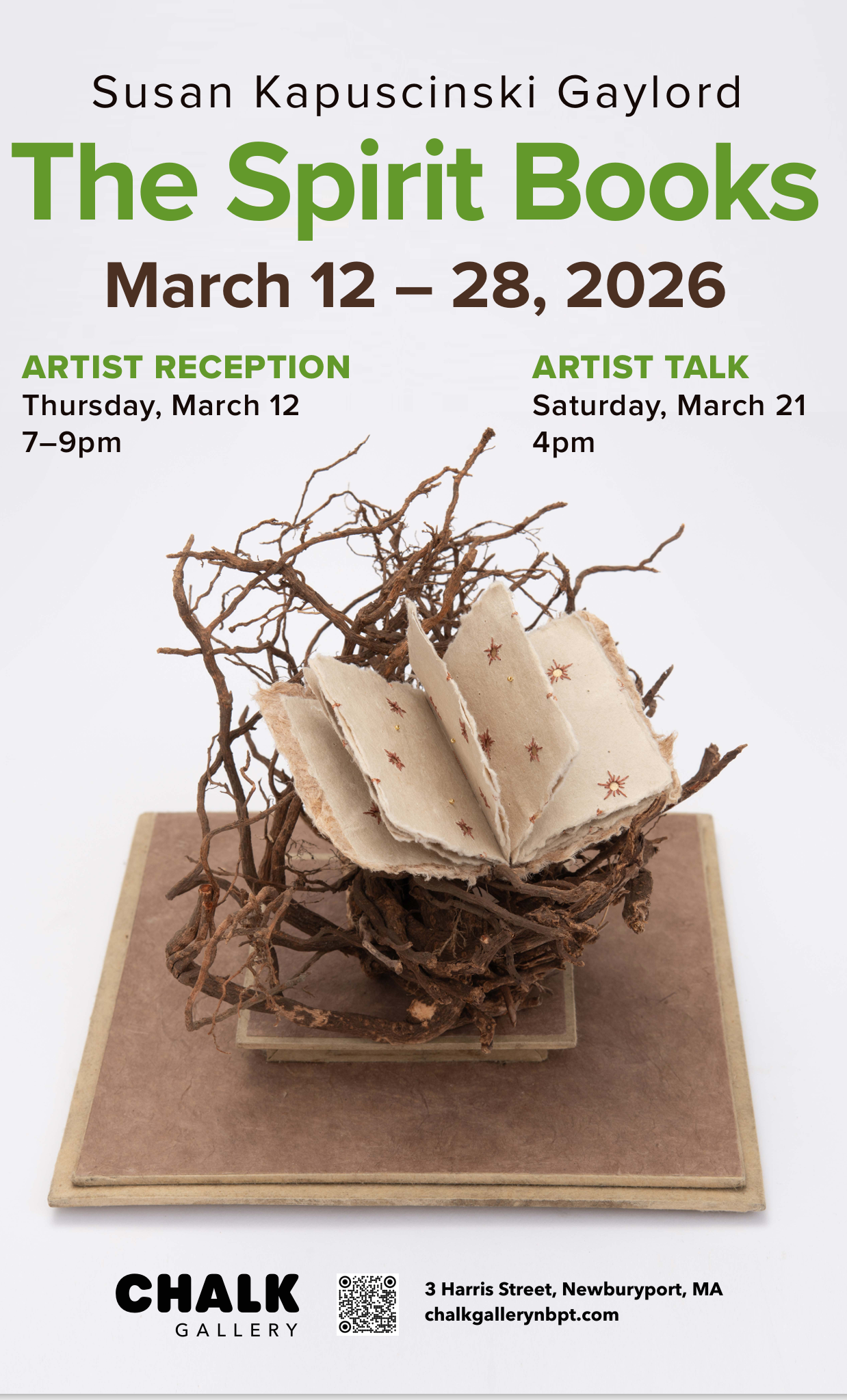 These extraordinary natural treasures are created with marvelous invention, intricate detail and masterful artistry - each a small wonder; most of the book's cradles are findings from only the Newburyport area- it doesn't get more local than that. These works will be on display and some for purchase March 12-28, 2026.